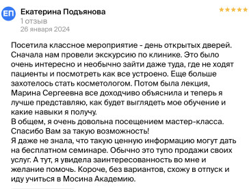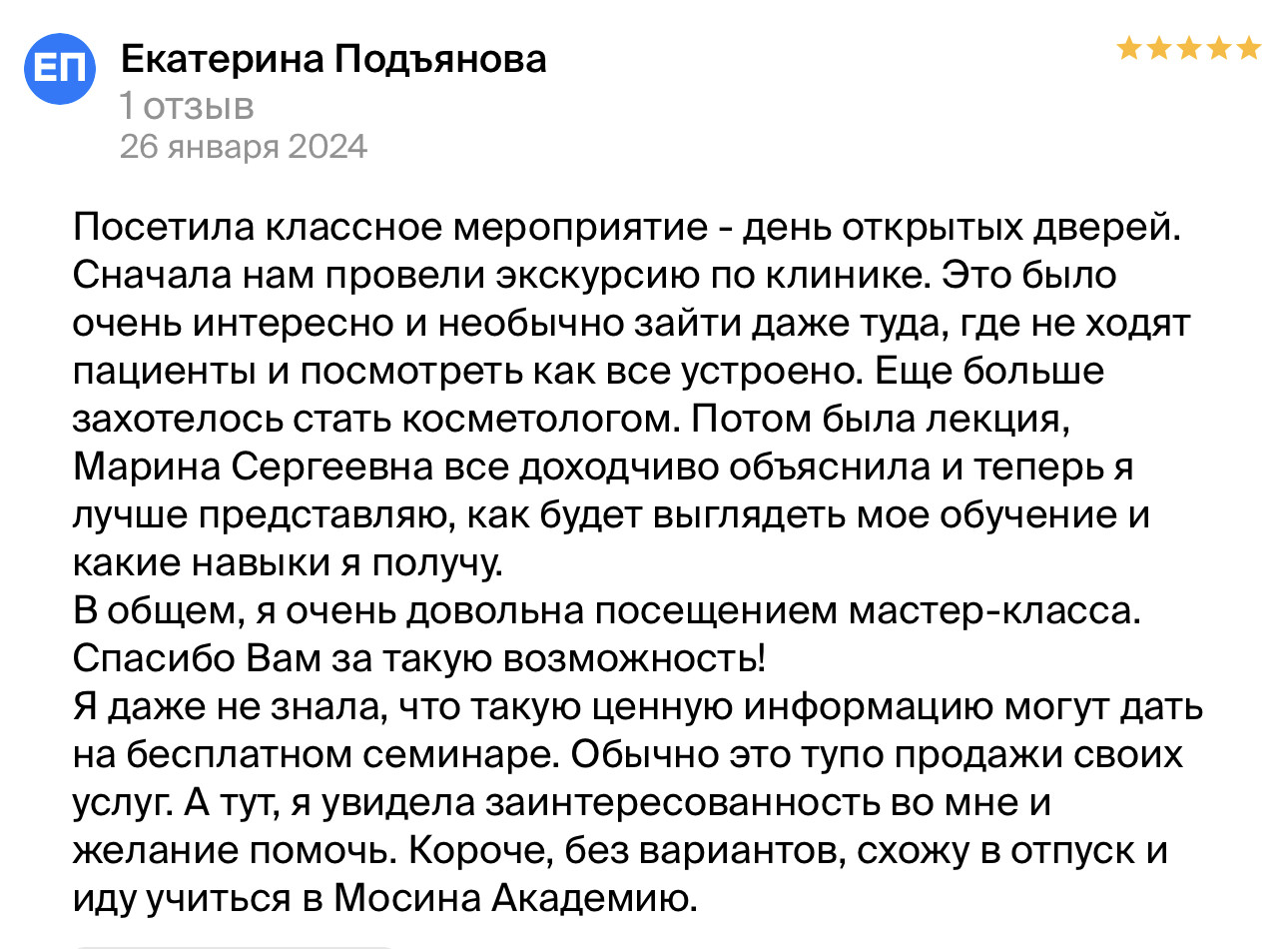 Mosina Academy - это школа косметологии и эстетики, основанная на базе клиники эстетической медицины Mosina Clinic.